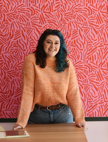 After graduating, Sarah spent eight years sharing her love of art as a high school teacher. While rewarding, the work left little time for knitting, although she crammed in as much stitching as possible during breaks. It was during one such break that she discovered her local yarn shop was hiring and leapt at the opportunity. This led her to a vibrant new community and a deeper dive into the world of fiber. Immersed in this creative environment, her knitting skills flourished, her knowledge of yarn grew, and she was introduced to the captivating world of hand-dyed yarns.