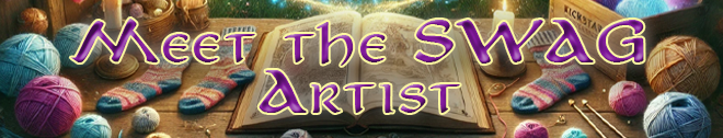 We're thrilled to have Bonnie Thomas of Yank Your Yarn as our featured swag artist for Socks & Sorcery! While Bonnie is known for her bold and occasionally NSFW designs, rest assured that everything she creates for this campaign will be 100% rated G—fun, whimsical, and family-friendly. And if you're curious about her raunchier gear, feel free to check out her Etsy store for a laugh and some delightfully cheeky fun.